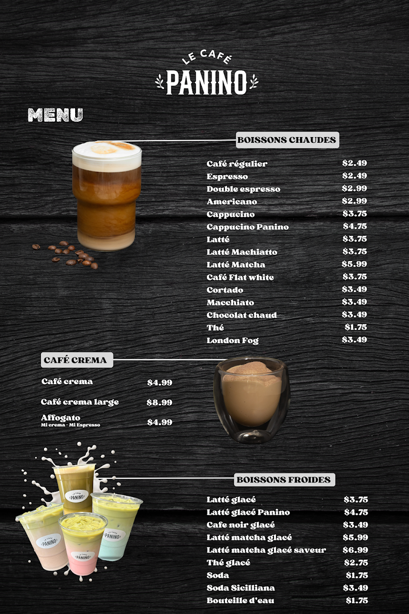 For coffee enthusiasts, Le Café Panino serves up a rich Café Crema for CA$4.99, alongside an exceptional Pistachio Crema that you won't want to miss. Matcha lovers can indulge in various delightful options, from the classic Matcha Latte to innovative iced versions like the Chocolate Iced Matcha Latte.